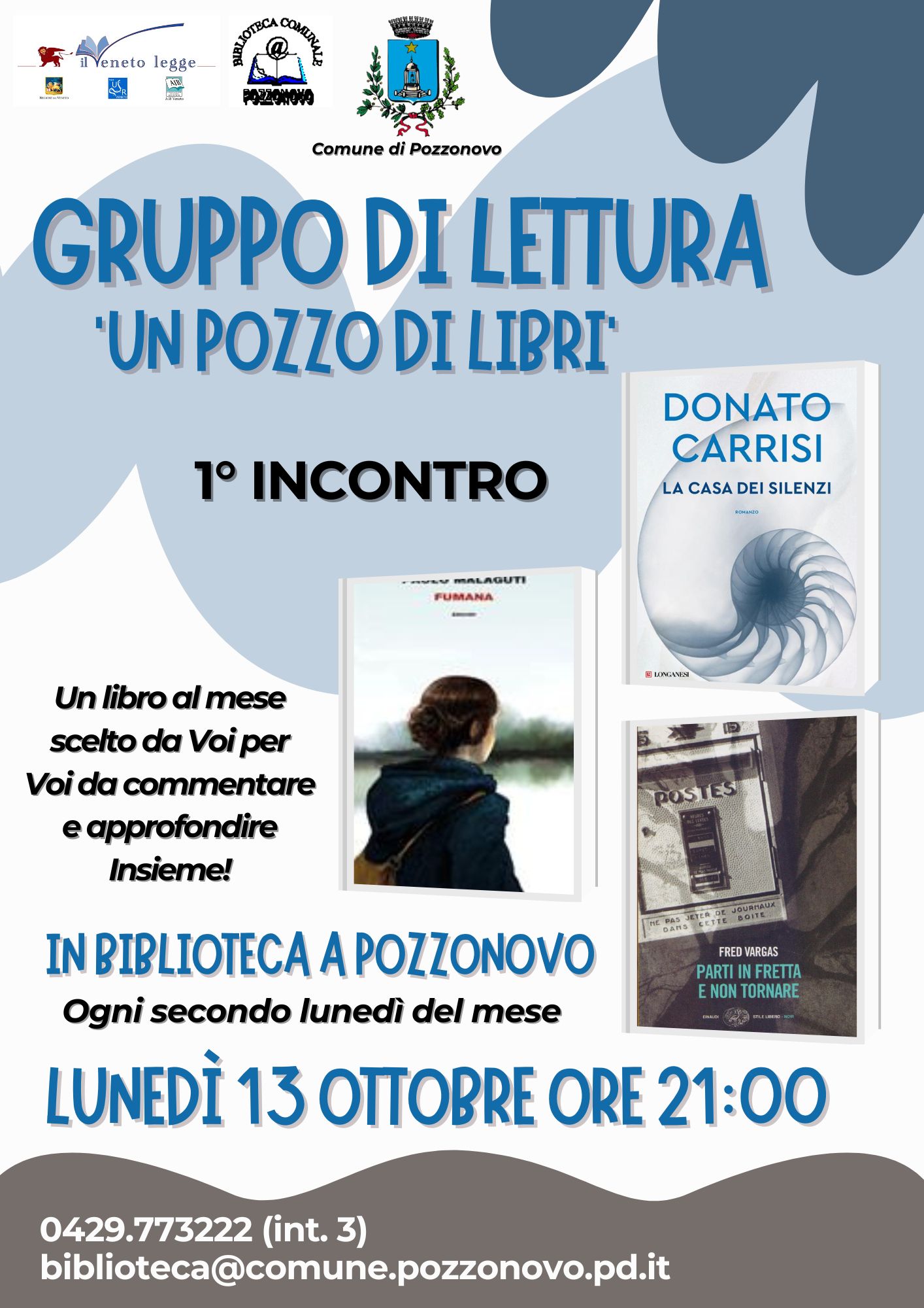 Il gruppo di lettura “Un Pozzo di Libri” riparte! Lunedì 13 ottobre alle ore 21.00 in Biblioteca a Pozzonovo ci incontreremo per raccontarci le letture estive e scegliere insieme il primo libro della nuova stagione. Da ottobre ci troveremo ogni…