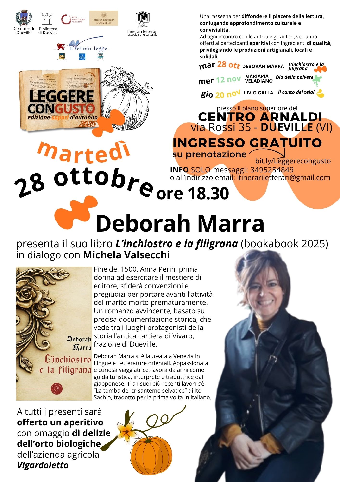 Primo appuntamento di 𝗟𝗲𝗴𝗴𝗲𝗿𝗲 𝗰𝗼𝗻 𝗴𝘂𝘀𝘁𝗼 edizione autunnale. 𝗣𝗿𝗶𝗺𝗮 𝗼𝘀𝗽𝗶𝘁𝗲 𝘀𝗮𝗿𝗮̀ 𝗗𝗲𝗯𝗼𝗿𝗮𝗵 𝗠𝗮𝗿𝗿𝗮, con il suo nuovo libro "𝗟'𝗶𝗻𝗰𝗵𝗶𝗼𝘀𝘁𝗿𝗼 𝗲 𝗹𝗮 𝗳𝗶𝗹𝗶𝗴𝗿𝗮𝗻𝗮": il racconto di una 𝗱𝗼𝗻𝗻𝗮 𝗶𝗻𝗱𝗼𝗺𝗶𝘁𝗮 𝗲 𝗶𝗻𝘁𝗿𝗮𝗽𝗿𝗲𝗻𝗱𝗲𝗻𝘁𝗲, nell'affascinante contesto del 𝗖𝗶𝗻𝗾𝘂𝗲𝗰𝗲𝗻𝘁𝗼 𝘃𝗲𝗻𝗲𝘁𝗼. 𝗧𝗿𝗮 𝗹𝗲 𝗮𝗺𝗯𝗶𝗲𝗻𝘁𝗮𝘇𝗶𝗼𝗻𝗶 protagoniste della…