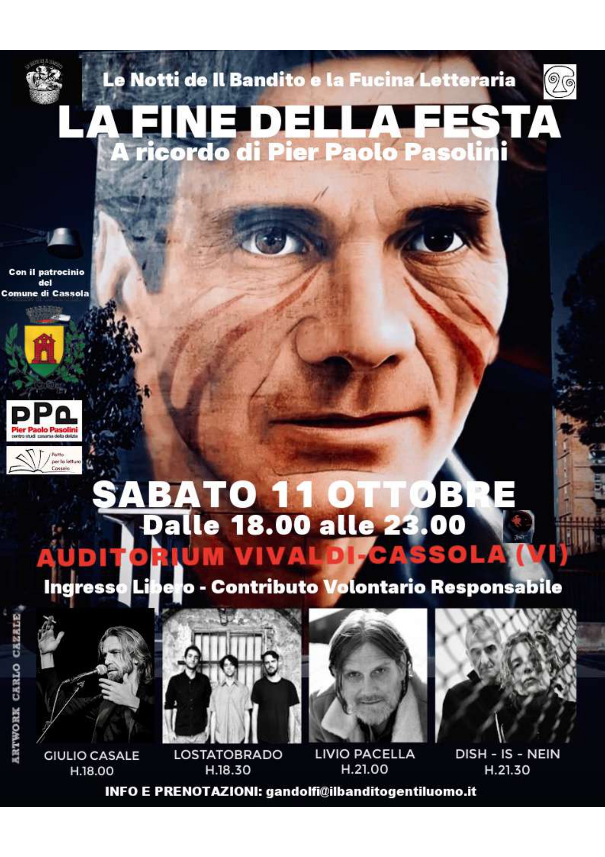 Dalle ore 18, il cantautore, attore e leader degli Estra introdurrà a modo la serata; a seguire live di LOSTATOBRADO; alle 21.00 conferenza spettacolo di LIVIO PACELLA (attore/drammaturgo e regista) impegnato nella performance "Piccoli Poemi Politici Personali” con la partecipazione…