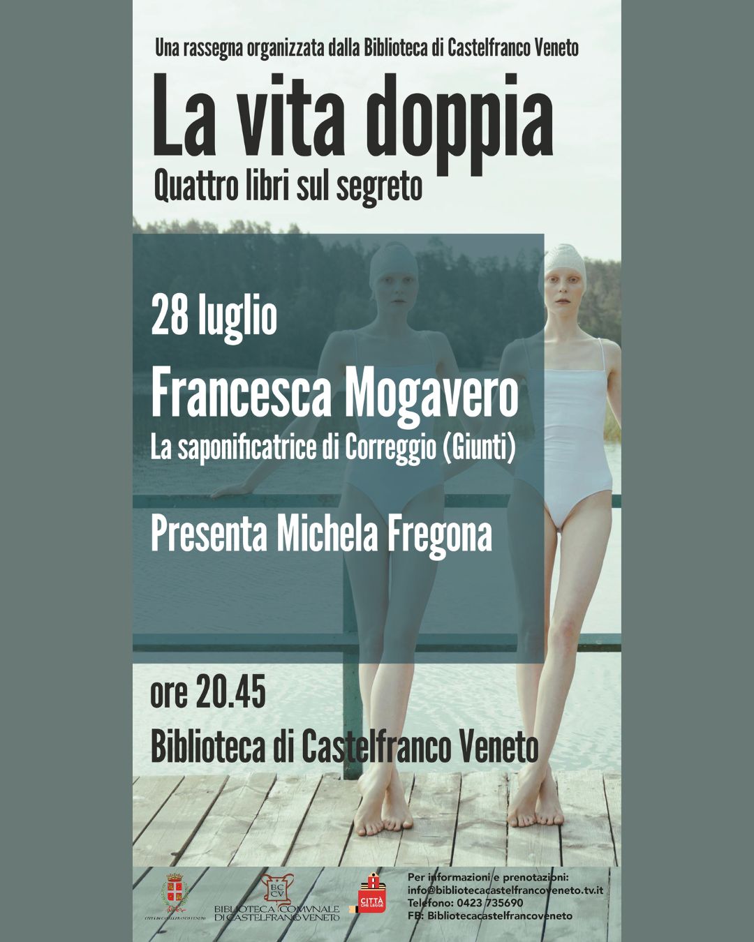 Francesca Mogavero presenta il libro "La saponificatrice di Correggio", in dialogo con Michela Fregona. Secondo incontro della rassegna "La vita doppia: quattro libri sul segreto". Quattro romanzi che raccontano il multiplo nelle nostre vite: nel terreno delle scelte e della deviazione, a colloquio con la Storia e nel chiuso della famiglia, nelle pagine che sono state scritte prima di noi, e che di noi -attraversando il tempo - parlano.